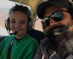 Megan Frost flying to the Spaceport with her Dad, Chris Frost,