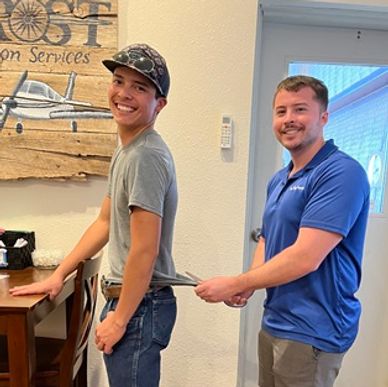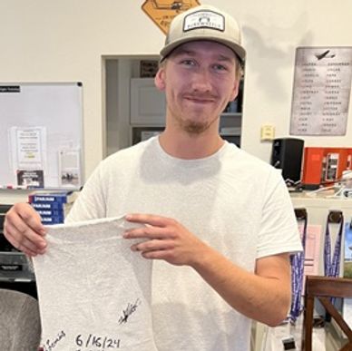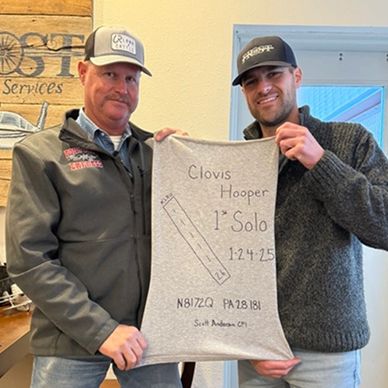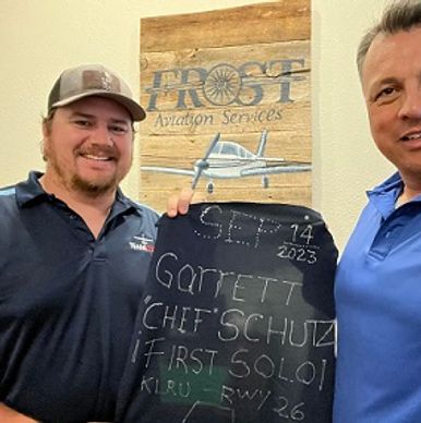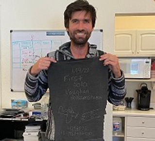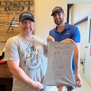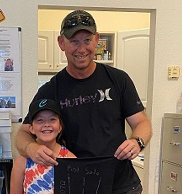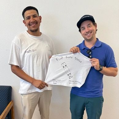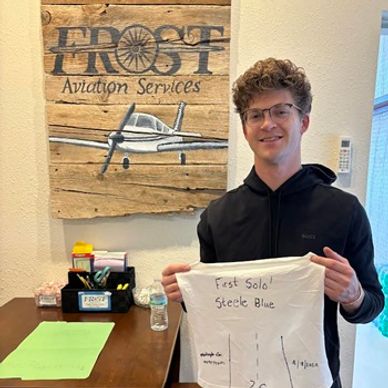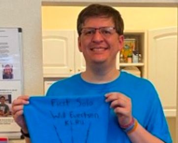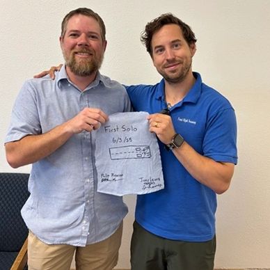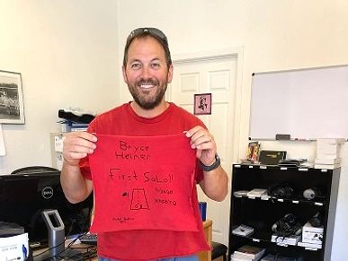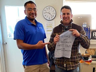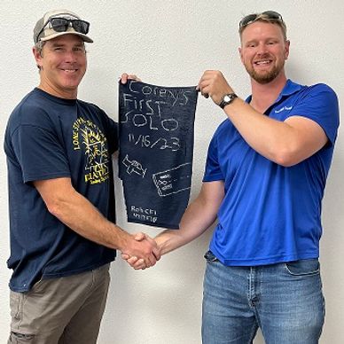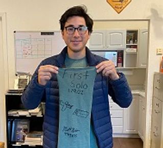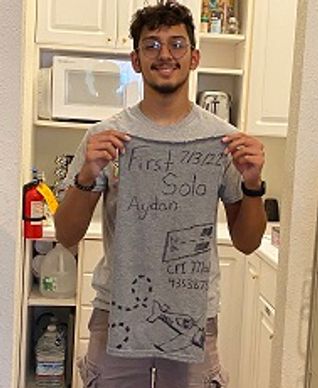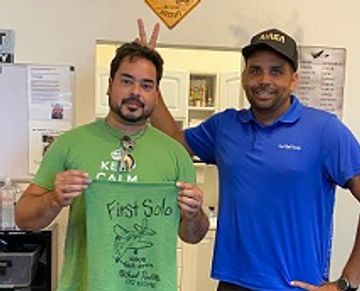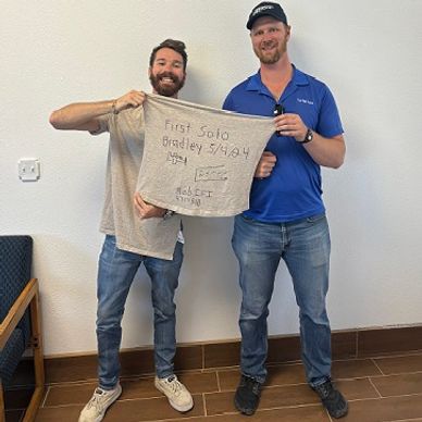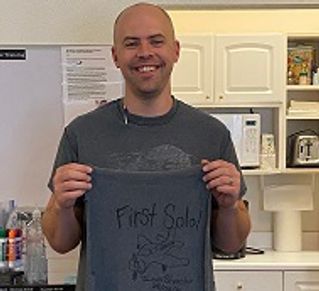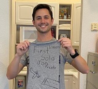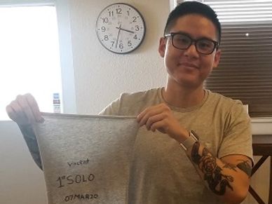 Andrew did his First Solo and got his shirt cut off by his CFI, Henry