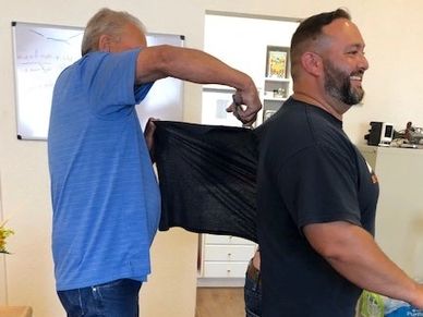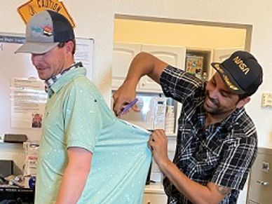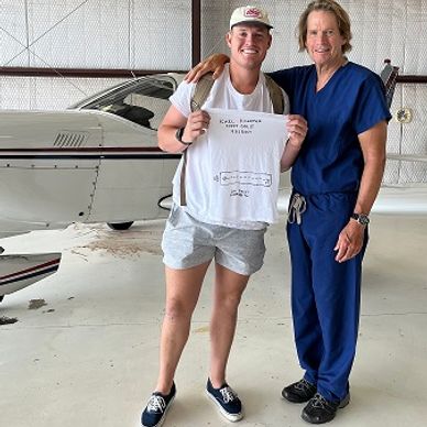 Jon got his shirt cut off after he did his First Solo in a Fixed Wing Airplane
